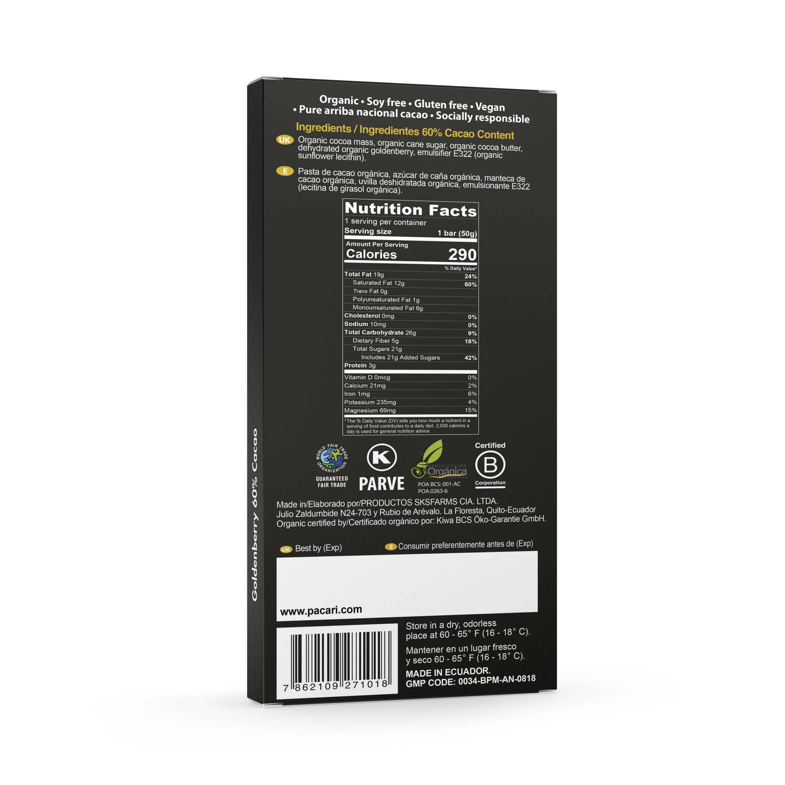 Goldenberry 50gr Chocolate Bar 60% Cacao